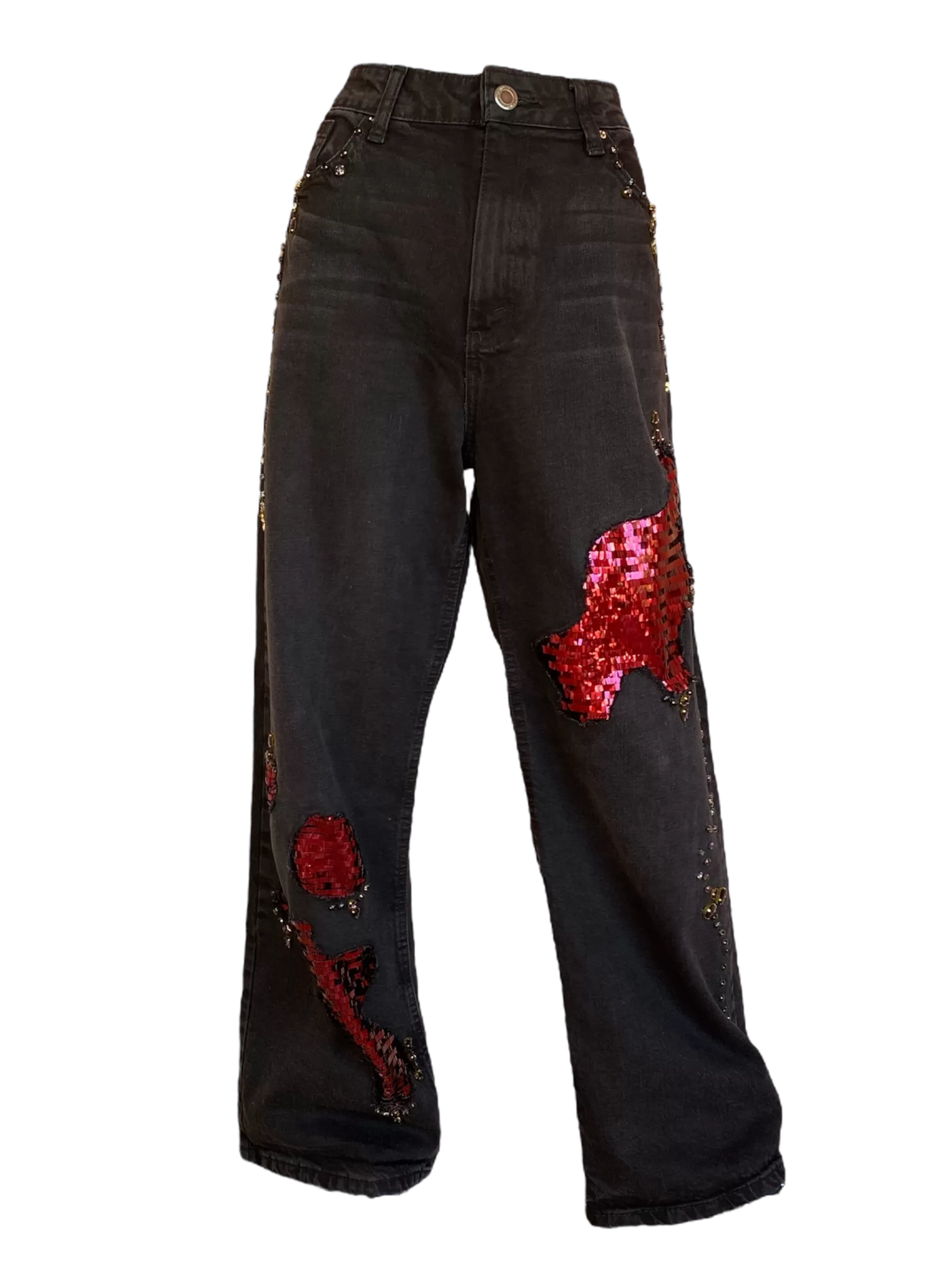 - Pantalon con detalles de pedreria y lentejuela bordada.