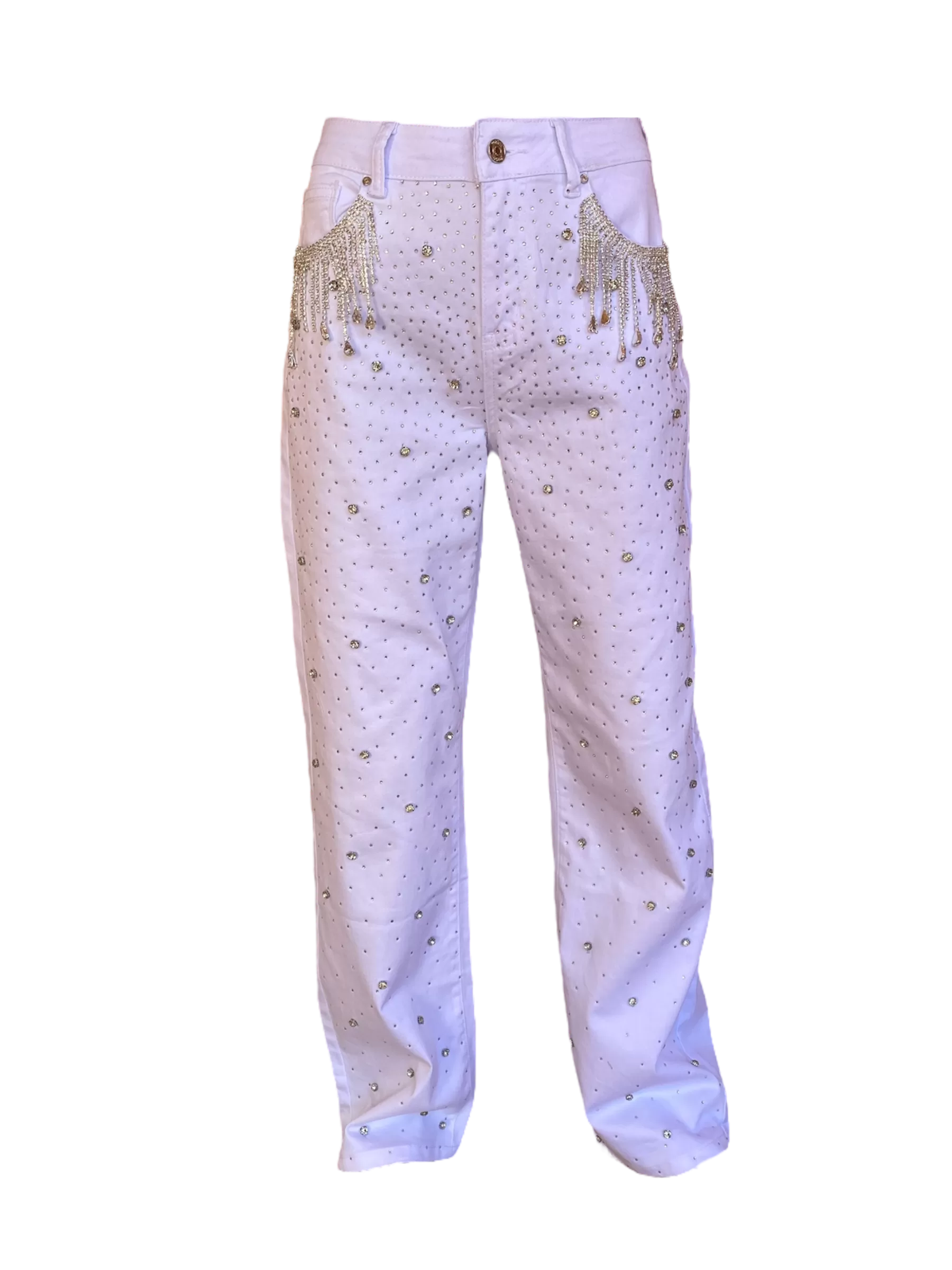 Pantalon con pedrería bordadas a mano.