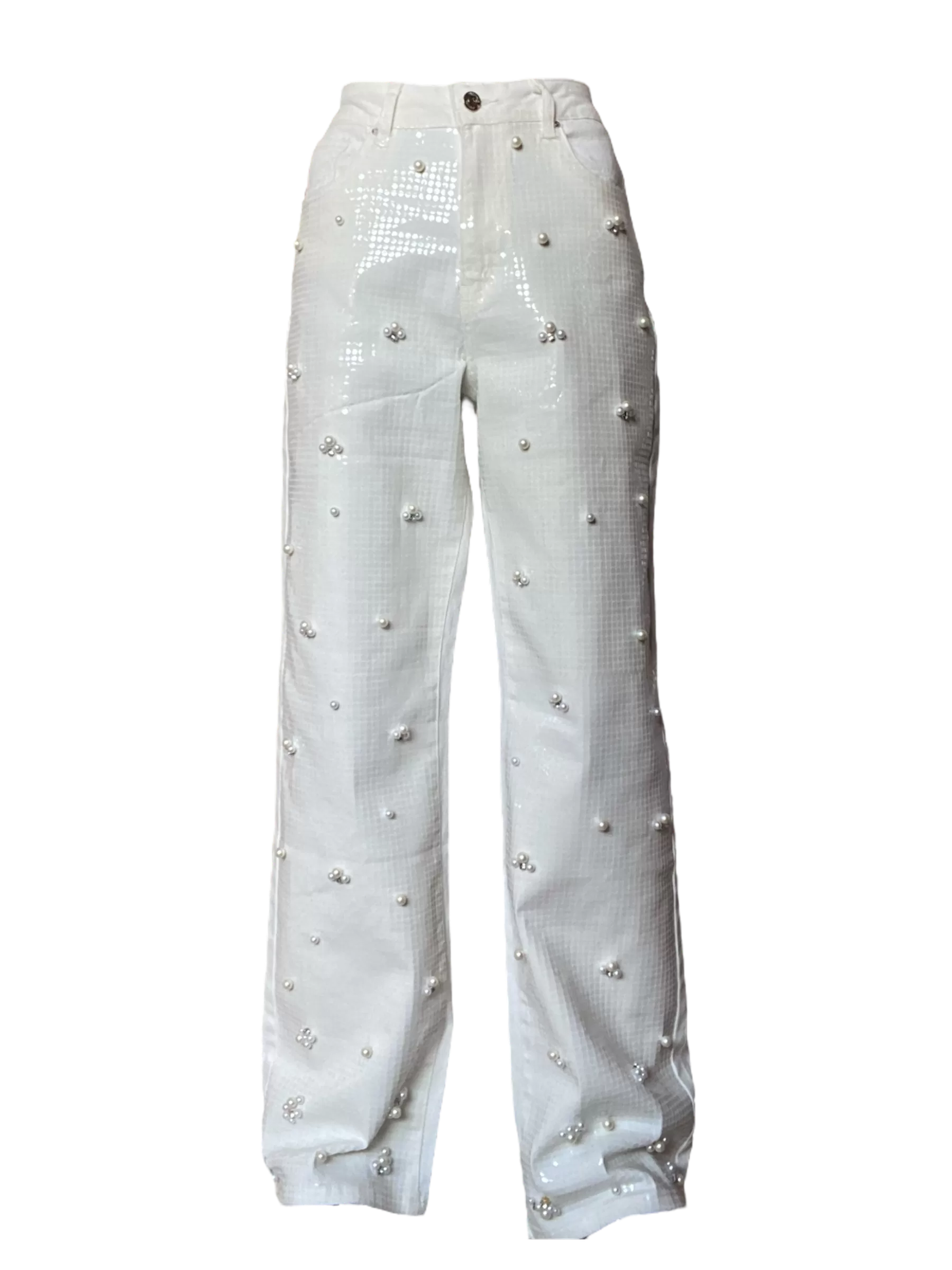 Pantalon con perlas bordadas.