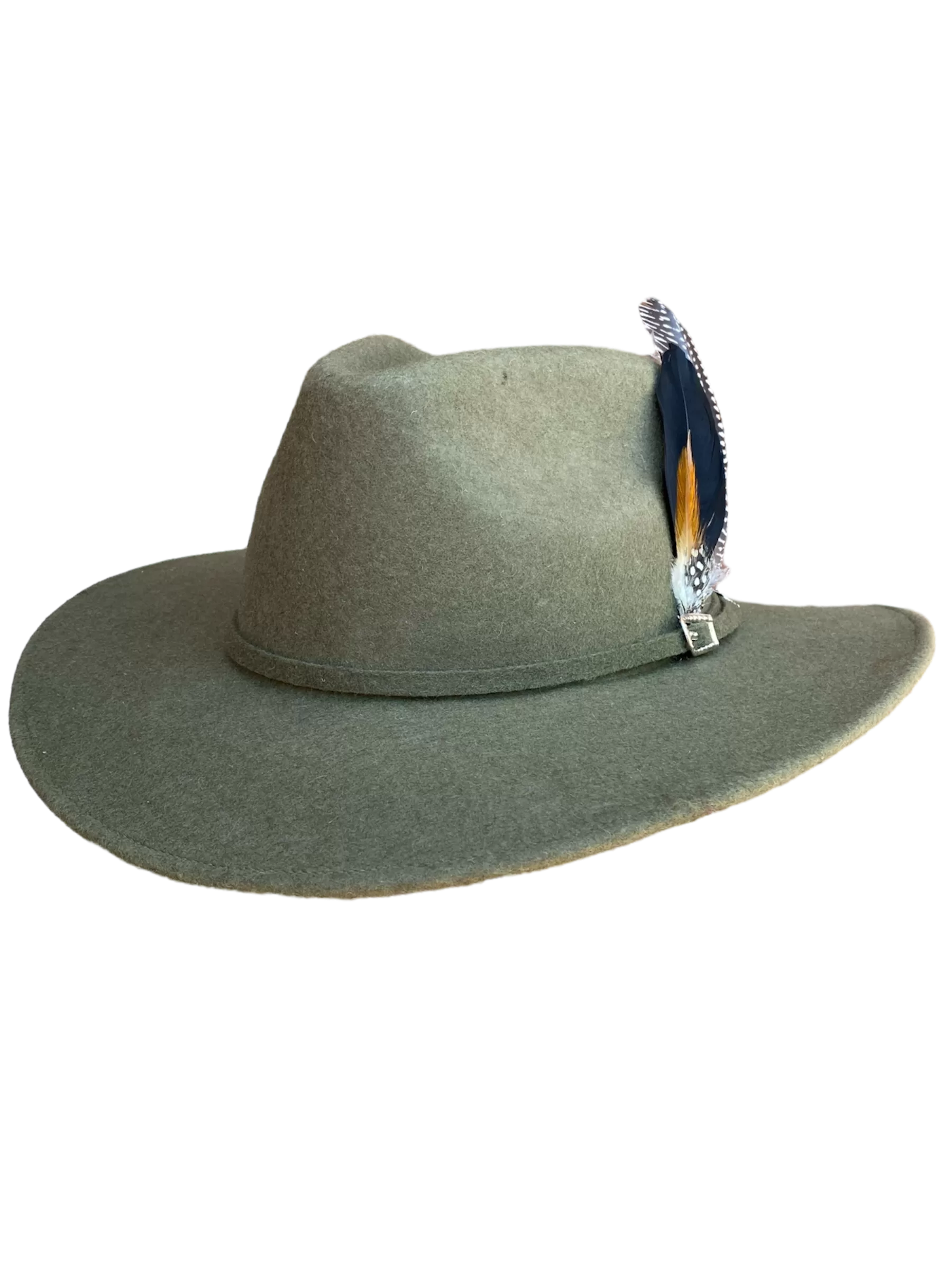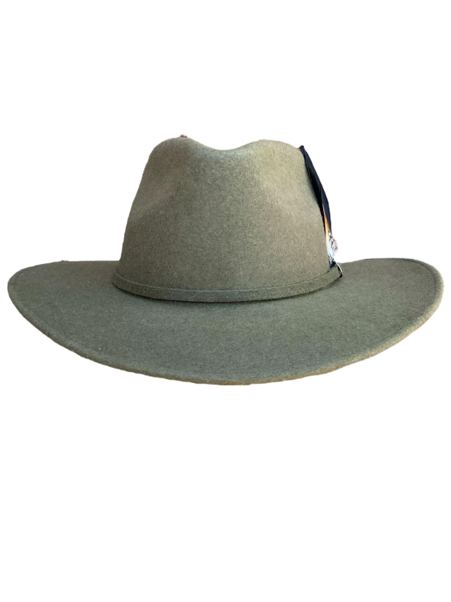 Sombrero estilo indy de gamuza con detalle de plumas. cantidad