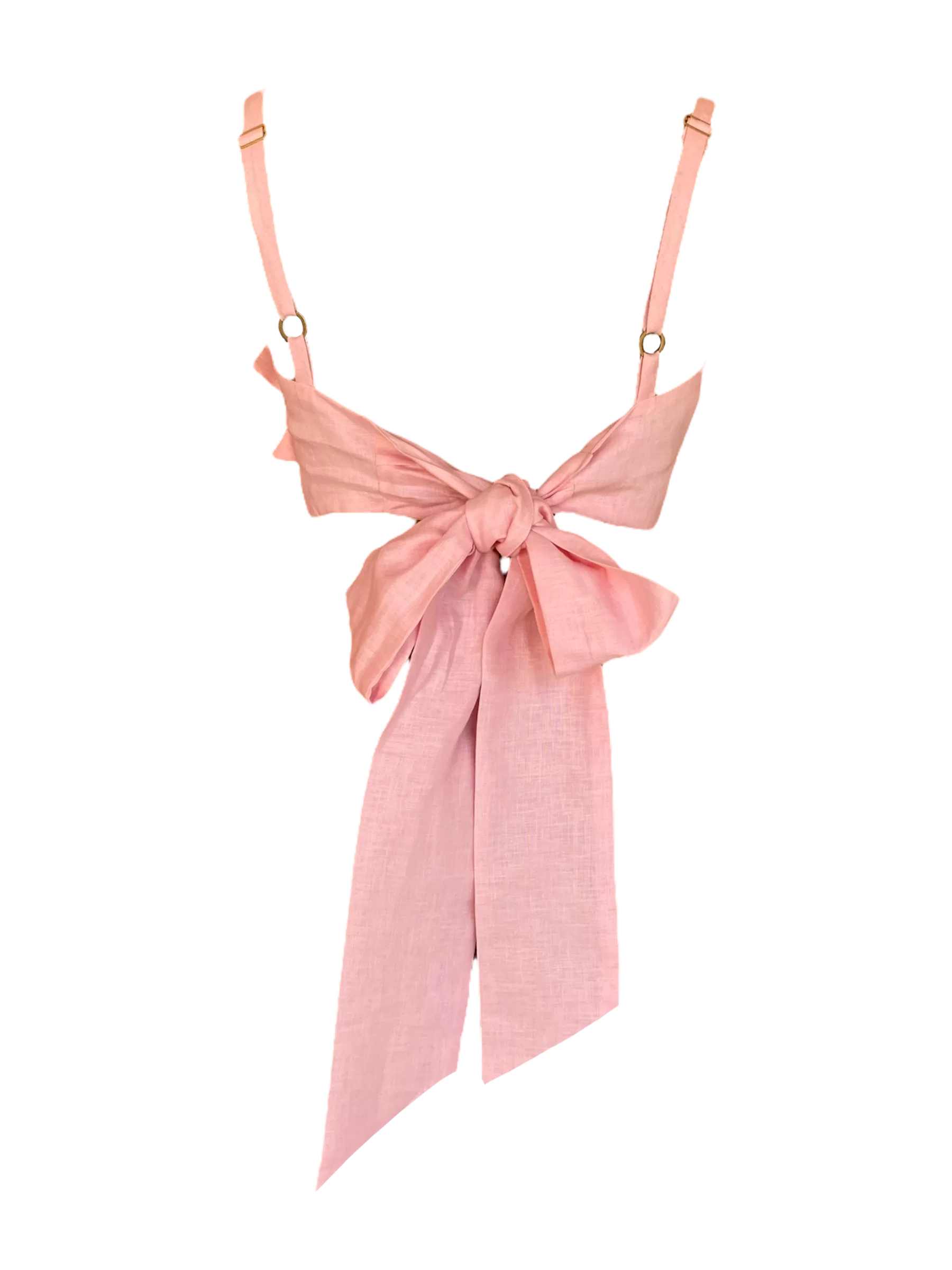 - Top de lino con flor hecha a mano. Se abrocha en la parte trasera ajustable a tu media.