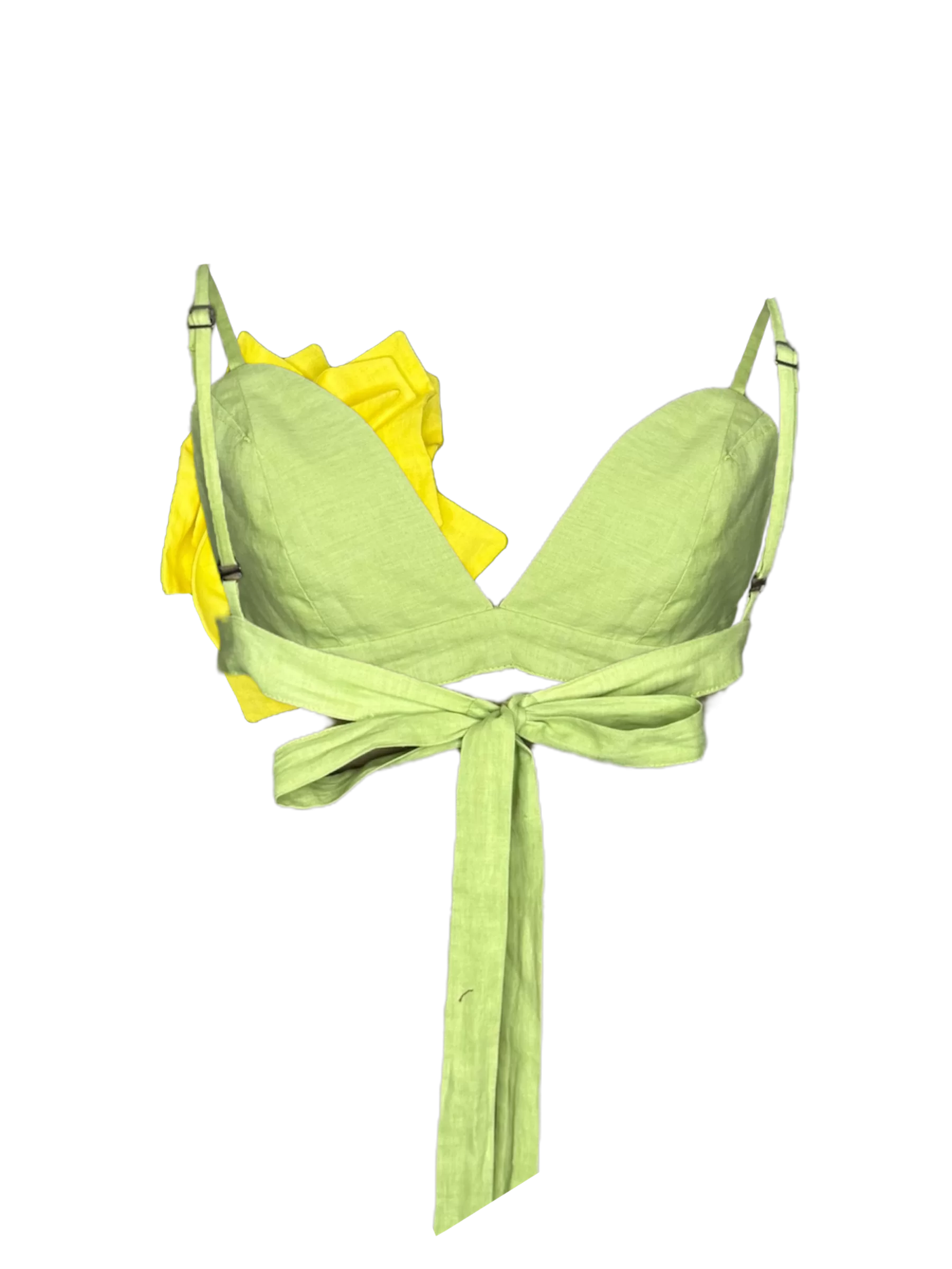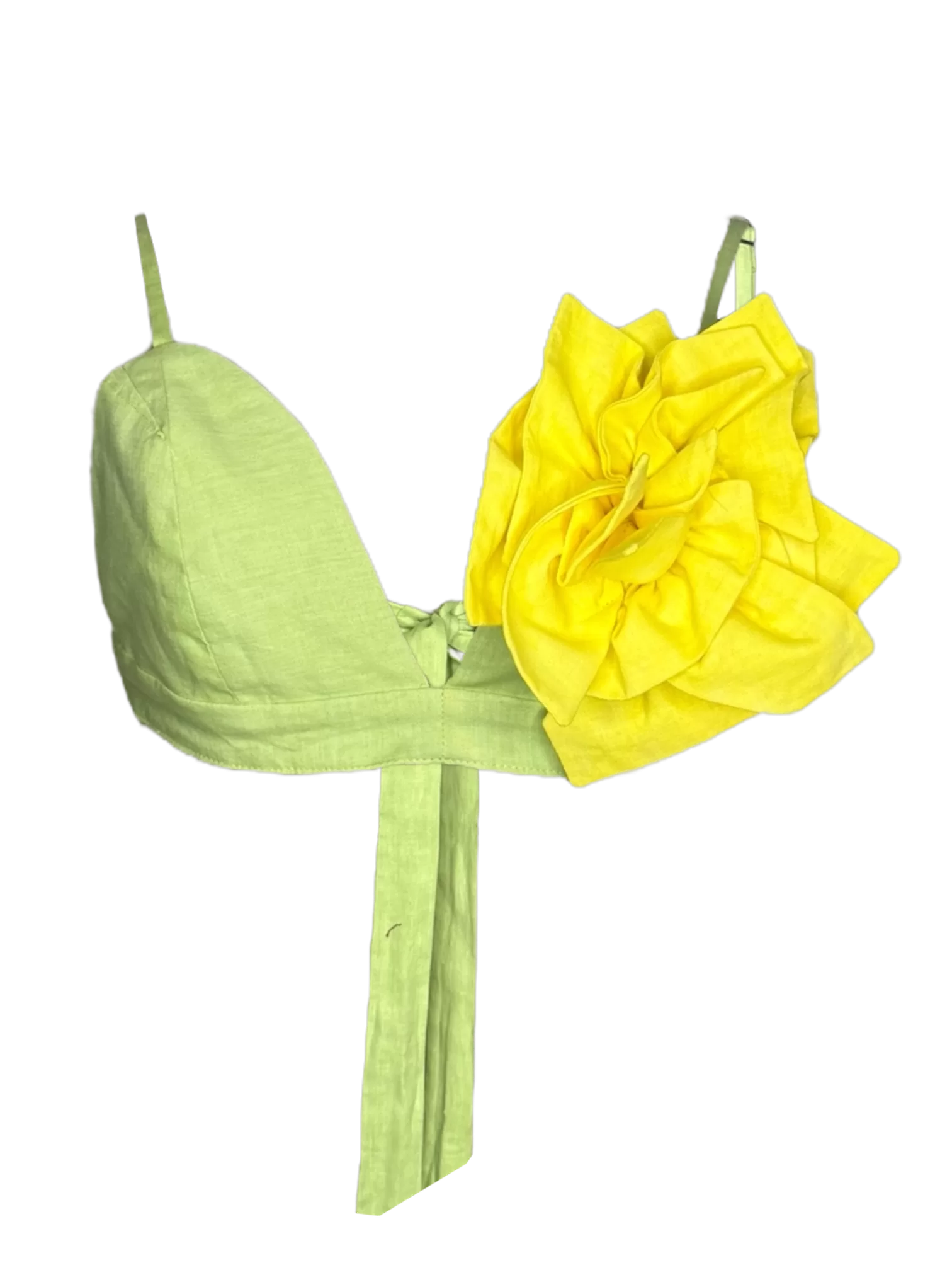 • Top de lino con flor hecha a mano. Se abrocha en la parte trasera ajustable a tu media.